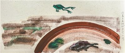 那只青蛙从浮萍上高高跃起,想要攀着月光跳出这水缸的世界,很快传来水面破了的声音,它又跌回到了缸里。过了一阵子,“越狱”的努力再次上演,也不知道这青蛙最终是否跳出了水缸,反正它最终从水缸里消失了。