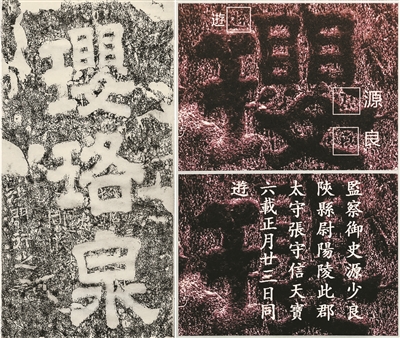 这处石刻在下天竺一块崖壁上,多少年来,无数人一眼所见就是元代僧人行之的榜书“璎珞泉”三个大字。2021年底,这处西湖景区最早的摩崖题刻在此水落石出。“摩友”奚珣强在“璎珞泉”字边发现一些漫漶字迹,对照金石文献,反复辨认,终于破解出其中“源”“良”“游”三字,就是失传已久的唐代“源少良等题名”。更精彩的是,这处唐刻之外还隐藏着两处宋刻,一石四刻,十人题名,横跨唐、宋、元三朝。