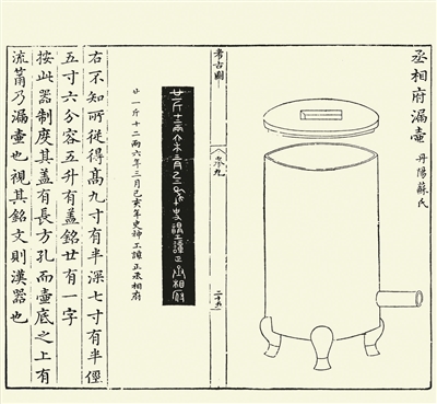 北宋吕大临《考古图》记录的苏颂藏汉代计时器丞相府铜漏壶,这与“水运仪象台”的发明也有极大联系。