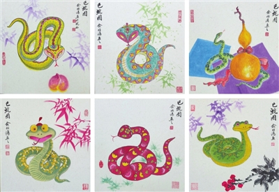 为了将生肖蛇画得灵动可爱,让更多人接受,俞柏鸿从半年前便开始研究与构思,并从古籍、绘本和民间传说中寻找灵感,力求创新突破。当60幅生肖蛇作品呈现在我们面前时,无不让人感到惊艳与惊喜。作品笔墨精细润泽,设色简洁明快,独具个性且富有时代气息。在他的笔下,这些生肖蛇或灵动、或喜庆、或神秘、或威严,通过融合国画写意和漫画夸张等元素,使每幅作品都栩栩如生。近日,他还复刻了其中的10幅,于新年期间在马来西亚槟城展出。