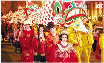 瓶窑老街的“瓶日好市”市集别具风情。板凳游龙队伍穿梭,舞者步伐轻盈;花灯巡展队伍所到之处,人群一片欢腾;古风民谣比赛吸引了众多音乐爱好者一展歌喉……