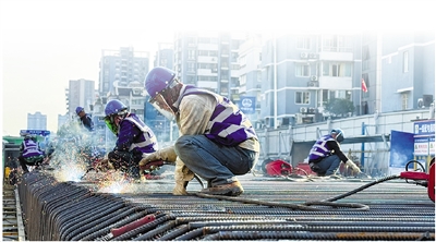 施工人员正在进行钢筋笼焊接。中铁四局供图
