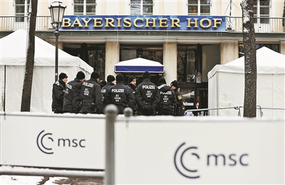 2月14日,警察在德国慕尼黑安全会议主会场外警戒。第61届慕尼黑安全会议定于14日至16日在慕尼黑举行。新华社记者 高静 摄