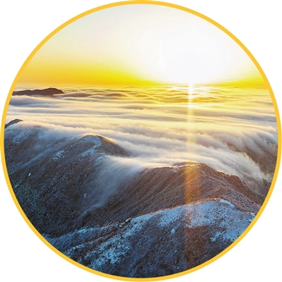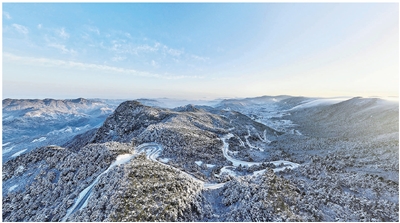 雪后初霁的临安太子尖山峦上云海流淌,当日出山巅、霞光万丈时,更是宛若仙境。