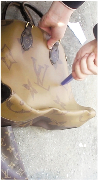 “它们的最终‘归宿’是垃圾箱。”上城区市场监管局行政执法队工作人员俞凡的右手开始颤抖,“我已经用锤子敲了50多瓶白酒了,现在又连着划了300多只包包,估计得有1000多刀。现场要做的就是将这些假货品牌的logo进行划破处理,之后它们会和生活垃圾一起由环卫车处理,进而被销毁。”