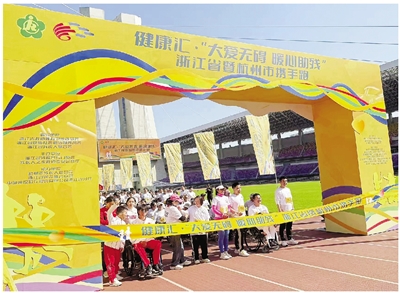 本报讯(记者 温欣欣 通讯员 杨威 杨云飞)昨日,健康汇·“大爱无碍 暖心助残”浙江省暨杭州市携手跑活动在浙江省黄龙体育中心举行,盲协彩虹跑团、肢协结伴跑团、聋协追风跑团、智亲协弯湾跑团、精亲协阳光跑团、孤亲协融爱跑团以及爱心助残志愿者7大跑团火热开跑(右图)。