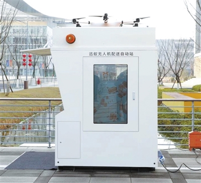 近日,杭州市北京航空航天大学国际创新研究院联合迅蚁科技、饿了么打造的无人机配送航线正式运营,这也是饿了么在杭州开启的首条高校无人机外卖航线。