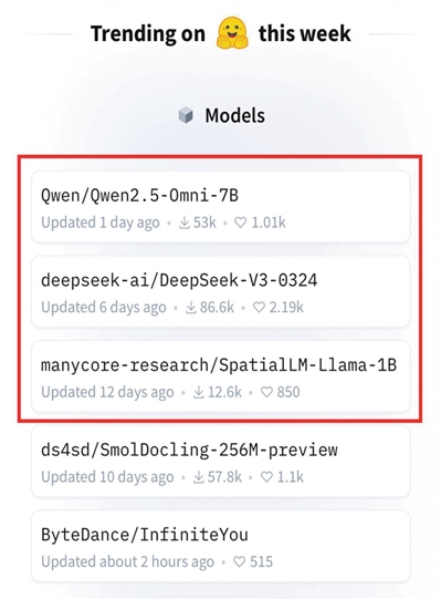 3月26日—4月2日,杭州的3个大模型包揽Hugging Face榜单前三。网络供图
