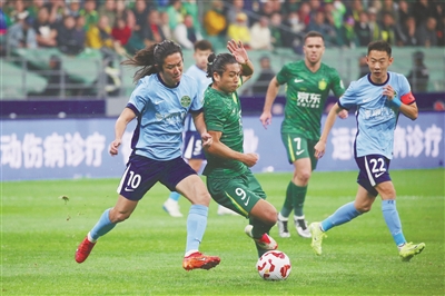 但本赛季第一次身穿客场球衣比赛的浙江队,在比赛中并没有展现出前两场那样的效率。面对从阵型打法,到技术风格,甚至是主教练国籍都一模一样的北京国安,球队在攻防两端都明显落后一个节拍。上半场21分钟国安外援法比奥禁区内误打误撞获得射门机会,以及下半场56分钟浙江绿城梁诺恒与门将赵博发生“误会”的乌龙球,都是比赛中球队全方位落后于北京国安的不同表现。