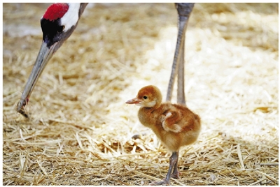 4月10日,是2025年浙江“爱鸟周”的第一天。当日,一对丹顶鹤宝宝在杭州野生动物世界亮相,成为该园“爱鸟周”系列活动的“形象大使”,向公众展现新生与守护共筑的生态画卷。通讯员 王秋园 摄 记者 李忠 文