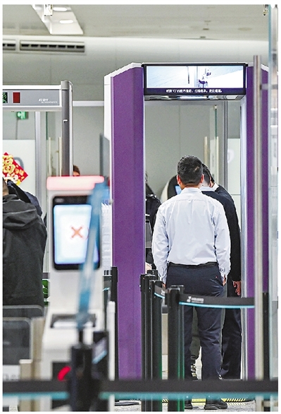 上周五下午2点,杭州机场T4航站楼国内安检口人头攒动。杭州机场安护部客检二科队长薛飞拿起对讲机,迅速下达指令:“加开两条安检通道,确保安检秩序。”