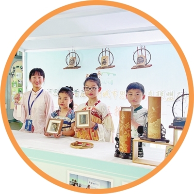 其中“童韵竹刻”课程以传承非物质文化遗产竹刻为基础,结合小学生的身心发展,梳理和创意设计“浙派竹刻”资源,挖掘竹的精神内涵,将书法、剪纸及卡通等艺术形式融入竹刻。通过“以刀代笔,以竹为载体”的方式,学生不仅能在刀刻中感受传统文化的魅力,还结合创意,使濒临失传的竹刻技艺得以“活态”传承,这一举措也培养了学生的创造力和审美能力。