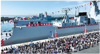 现役舰艇开放是备受民众关注的活动,今年海军开放舰艇超过30艘,型号、数量均超过往年。结合“战舰回家乡”活动,海南舰、秦皇岛舰、潍坊舰、五指山舰、三亚舰等现役舰船靠泊命名省份或城市,南京舰、六安舰靠泊人民海军诞生地江苏泰州,郑和舰靠泊郑和下西洋起锚地江苏太仓,受到当地党政机关和群众热烈欢迎。在山东青岛,成都舰、唐山舰、临沂舰、日照舰、可可西里湖舰等5艘舰船悬挂满旗靠泊开放,吸引参观群众打卡拍照。在黄浦江畔,沂蒙山舰、西安舰靠泊上海港国际客运中心码头,与地标建筑东方明珠广播电视塔同框出镜。