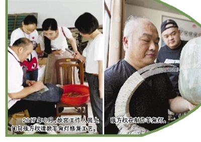 在仔细看过故宫工作人员带来的羊角灯图片后,凭借世代制灯的经验,张方权确认这对灯正是羊角所制,当场演示了羊角灯的制作流程和残灯修补技艺,故宫工作人员全程拍摄了视频。
