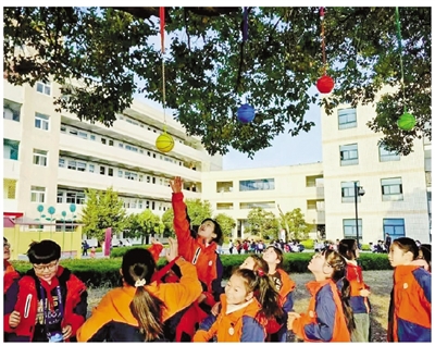 “我们希望学校的美育空间,尽可能让孩子们都参与其中。”卢凯说。学校将非遗技艺“萧山花边”巧妙融入校园建设与劳动教育。操场上的彩色投掷网,正是由“萧山花边”技艺编织而成。教务处主任金萍介绍,“在课间15分钟的自主活动时间里,我们坚持走得出、有得玩、玩得好的原则。孩子们自己设计游戏项目变成STEM体育与美术融合的课程项目;校园中部分损坏的栅栏,也由学生们动手,用花边技艺进行修补,既锻炼了实践能力,也让传统工艺在日常生活中得以自然传承,这些都是学校架构课程的出发点。”