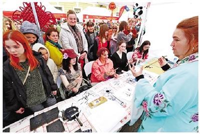 “茶和天下·雅集”活动5月31日在白俄罗斯首都明斯克举办。中白各界人士在市中心的自由广场“以茶会友”,在茶香与艺术中感受和谐共融的东方之美。图为市民在体验中国绘画。