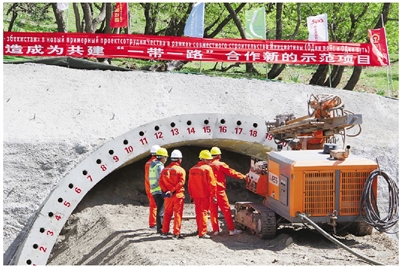 2025年4月29日,工作人员在吉尔吉斯斯坦贾拉拉巴德地区的中吉乌铁路重点控制性工程开工现场忙碌。 新华社发(罗曼 摄)