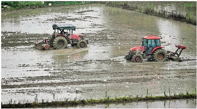 连日来,在余杭区良渚街道东塘河村的连片农田里,农机手抢抓农时,驾着“铁牛”整地修畦、犁田插秧,进行全机械化晚稻种植作业。近年来,余杭区积极推进科技强农、机械强农“双强”行动,有效提升了粮食生产效率,全面促进农业高质量发展。记者 李忠 摄