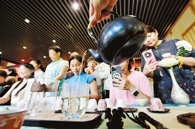 近日,在中国茶叶博物馆举办的“第四届西湖龙井茶核心产区大师别茶会”上,来自西湖龙井茶核心产区的20位制茶技能大师携各自所制好茶同台参评,并由茶艺师现场演示西湖龙井茶的“十大冲泡技法”,邀请市民游客品鉴不同泡法龙井茶的不同滋味。