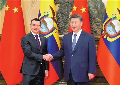 习近平指出,今年是中厄建交45周年,两国关系发展势头良好。厄瓜多尔加入共建“一带一路”大家庭,双方签署自由贸易协定,在能源、矿业、电力、基础设施建设等领域开展了富有成效的合作。中方始终从战略高度和长远角度看待和发展中厄关系,愿同厄方一道努力,推动中厄全面战略伙伴关系不断走深走实,更好造福两国人民。