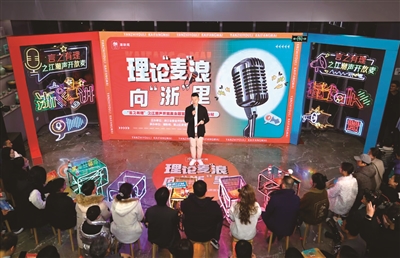 今年年初,理论“麦”浪向“浙”里——“言之有理”之江潮声开放麦主题宣讲进基层萧山站活动,在蜀山知书馆内火热开麦。活动现场,七位来自浙江“8090”和“00后”新时代理论宣讲团的优秀宣讲员进行宣讲展示。他们深入多个领域,通过生动鲜活的事例,将理论知识与基层探索经验层层递进,呈现了一场精彩绝伦的视听盛宴。