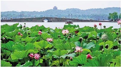 时至7月中旬,西湖里各片荷区的开花率均达到五成左右,也就是到了花开最盛的最佳观赏期。市民游客可避开白天的烈日高温,选择在花瓣初绽的清晨或柔光蓝调的傍晚漫步湖畔,欣赏“荷浪翻涌”的壮观景象。预计再过半个月,不少市民心心念念的西湖莲蓬与荷叶也将上市义卖了。