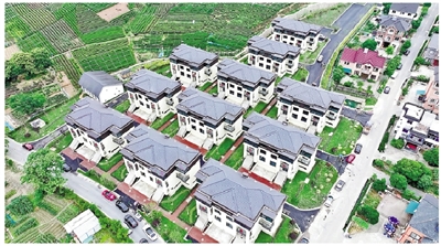 走进铜鉴湖防洪排涝调蓄工程项目安置区块,一幢幢新屋整齐排列,白墙黛瓦、绿意萦绕。据悉,该安置房项目占地面积22亩,每户安置房均配置地下停车位,另外还规划了地面公共停车位50余个,农居内铺设游步道、景观休憩区,搭配绿植与景灯,营造出“一步一景”的江南庭院风貌;在保留江南民居风貌的同时,还植入智慧安防、雨水花园等现代设施,以打造出“推窗见绿、下楼入园”的未来乡村样板。