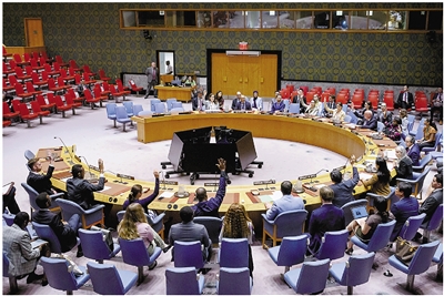 当地时间7月15日,在位于纽约的联合国总部,安理会投票表决红海相关问题决议。新华社发(联合国供图)
