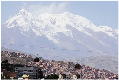 图为7月15日,缆车在玻利维亚拉巴斯城市上空穿梭。拉巴斯是玻利维亚的行政首都,主城平均海拔约3600米,是世界上海拔最高的首都城市,发展出一套独特的缆车公交系统。登上缆车车厢,几分钟内即可升至城市上空,大有“一览众山小”的开阔感;10人座的封闭式车厢也避免了城市通勤人群在公交车、地铁中摩肩接踵的局促;3玻利维亚诺(约3元人民币)的起步价更是让记者一行感叹缆车的性价比。据新华社消息