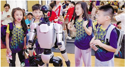 7月14日,杭州长寿桥小学的礼堂里,孩子们围着新朋友“小泰”——银泰百货的AI机器人欢呼雀跃。它的闪亮登场,正式拉开了2025年第十一届“银天书院”暑期夏令营的大幕!“银天书院”作为服务全国“小候鸟”十一年的公益品牌,已累计服务6600余名企业员工子女、社区“小候鸟”及困难家庭儿童,建立了覆盖全国30城的公益网络。本届夏令营首次将“智趣AI”作为开营核心,为孩子们带来科技融合成长的全新体验。记者 许卓恒 拱墅微融圈 周佳月 摄