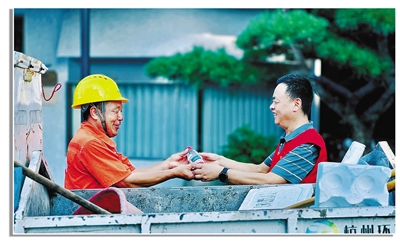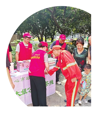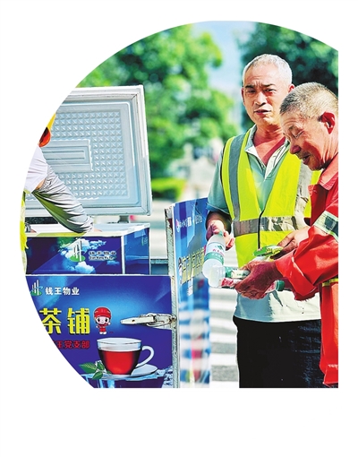 “每次路过,他们都会帮我们加水,问我们累不累。热的时候,那杯凉茶真是‘及时雨’,几口下去,身子都轻快了。”一线环卫工人陈永付说。