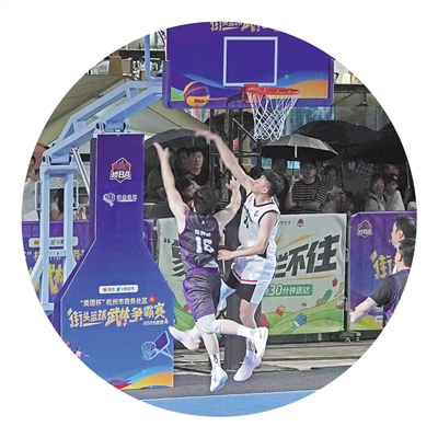 仲夏夜,大运河畔武林广场人声鼎沸,由拱墅区主办的杭州市商务社区街头篮球武林争霸赛已进入决赛阶段。当写字楼白领化身球场“猛将”、“武林劲旅”夜战星光下,四面八方的年轻人朝武林广场聚集而来,周边武林商圈的餐饮店、咖啡馆、潮牌店营业额随之激增。