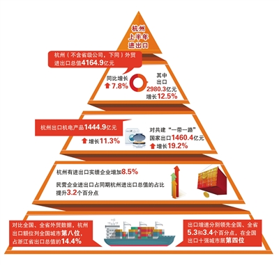 看主体发展之“势”——上半年,杭州有进出口实绩企业数量增加8.5%;民营企业进出口占同期杭州进出口总值的占比提升3.2个百分点。