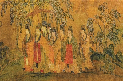 比如,在《虢国夫人春游图》里,马鞍的花纹中早已宣示着骑者的身份;比如,在沈周的《盆菊幽赏图》中,细读过画上沈周的题诗,才会发现这是一场虚构的雅集;初看马远的《月下把杯图》,或许并没有感觉,需要在别处偶然看过相关的历史钩沉后回头来看,才猛然理解它的深沉……