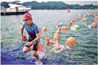 前不久举办的中国小铁人系列赛千岛湖站比赛再掀热浪。400余名“小铁人”在杭州亚运会的赛场挑战游泳、骑行、跑步三项全能。1300多名随行家属催生了旺盛的“赛事经济”:高端酒店入住率达90%、部分餐饮店日均营业额增长30%,周边便利店甚至临时增设“小铁人能量补给站”。统计数据显示,界首乡今年上半年共举办13场赛事活动,吸引1.2万余人次参赛,接待赛事相关旅游游客3万余人,同比增长10.5%。