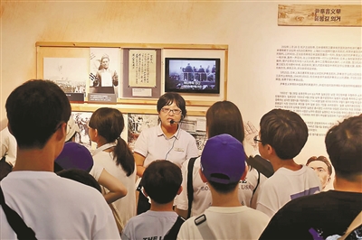 西湖边的长生路,青石板路映着夏日阳光,20余名韩国研学团学生走进一幢灰砖老建筑,门楣上中韩双语铭牌格外醒目——大韩民国临时政府杭州旧址纪念馆。正值暑期,这里已成为韩国游客来杭的热门打卡地,一拨拨参观者循着历史足迹,在这两层小楼内触摸一段跨越世纪的友谊。