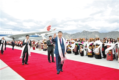 新华社拉萨8月20日电 中共中央总书记、国家主席、中央军委主席习近平率中央代表团20日中午乘专机抵达拉萨,出席西藏自治区成立60周年庆祝活动。习近平作为中共中央总书记、国家主席、中央军委主席率中央代表团到西藏出席西藏自治区成立庆祝活动,在党和国家历史上是第一次,充分体现了党中央对西藏工作的高度重视、对西藏各族干部群众的亲切关怀。