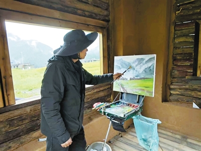 本报讯(通讯员 赵超 郑锋龙 记者 陈立平)当清晨的第一缕阳光刺破云层,照耀在稻城亚丁日松贡布三怙主神山,一群来自浙江的艺术家已在观景台支起画架。