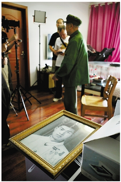 陈老的书桌上,金色的相框里是他年轻时的照片,他的眼神坚毅而果敢。陈老还特意踢了两个正步,又敬了一个标准的军礼。他一再叮嘱记者:“一定要让现在的伢儿学唱红歌,牢记历史,做一个坚强自信的中国人!”