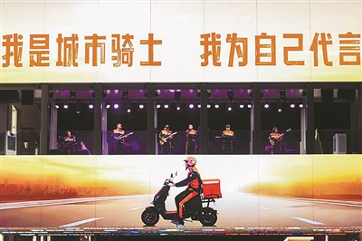 “从‘外卖小哥’到‘城市骑士’,变的不仅是名字,更是身份的被认同。”乐队主唱李瑞丰说。他做了5年多骑手,平时最爱音乐。这一次,他站在西湖地标上唱歌,身后是闪烁的湖光和鼓掌的人群,“很激动,平台真的把我们放在心上了。”