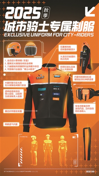 昨天,淘宝闪购与饿了么宣布,将为所有活跃骑士免费配发全套新装备——涵盖制服、头盔、餐箱,约百万骑士将受益。同时,“城市骑士保障激励体系”也迎来重大升级,平台将提供养老保险、医疗保险补贴,最高比例达100%;“橙意计划”加码激励骑士善举,不设上限,并设立助学金支持骑士子女教育;安全骑行也有额外奖励,安全救援产品同步升级。
