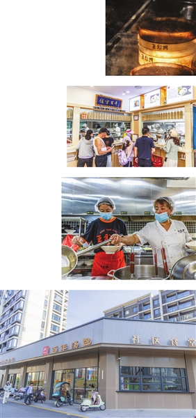 “老规矩,一碗馄饨,两份煎饺。”早晨7点,黄大伯和老伴朱阿姨准时走进社区食堂。红色灯笼下,木质菜单与“传统美味”“信守百年”牌匾相映,既有家的温馨,也不失老字号的庄重。