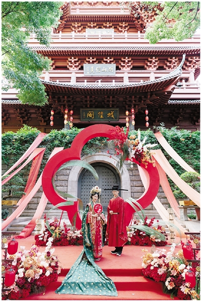 杭州城隍阁负责人介绍,此次西湖宋韵婚典在杭州城隍阁举行新人成礼主体仪式——祈福、拜堂、合髻、喜宴,让宋代的浪漫美学、宋代婚礼文化映照在古风宋韵的杭州城隍阁,穿越千年,流光溢彩。“这次在景区内举行的抛绣球、相亲交友等多场活动,也为七夕佳节增加了应景体验,反响热烈。”