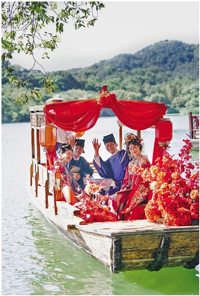 本报讯(通讯员 陈静静 记者 俞倩)昨天,“爱在西湖·情定七夕”西湖宋韵婚典盛大开启,从茅家埠“船上迎亲”到杭州城隍阁“拜堂成礼”终成眷属,活动以其独特的文化底蕴和审美情趣,打造了一场沉浸式宋韵浪漫美学婚礼。