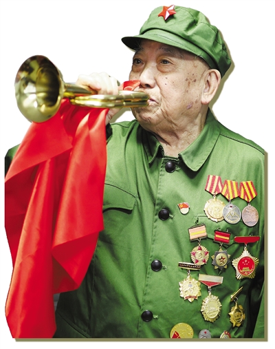 “我当兵之后才开始学吹号。”1945年初,未满17岁的马相生加入了新四军。因为年纪小,他被安排做一名司号兵,没有步枪,手上唯一的“武器”就是一把军号。