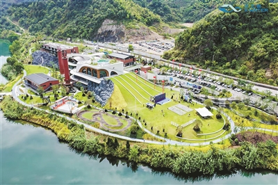 水之极潜水酒店由废弃碳酸钙企业旧址改造而成,酒店内设有500平方米、深度达42米的潜水池(目前为国内面积较大、配套较全的同类设施),并配备冲浪馆、法卡拉瓦泵道、专业抱石攀岩馆,以及118间客房、餐饮空间、户外运动区域和水下造景摄影场地。同时,酒店还设有运动员公寓、新中式餐厅等完备设施。