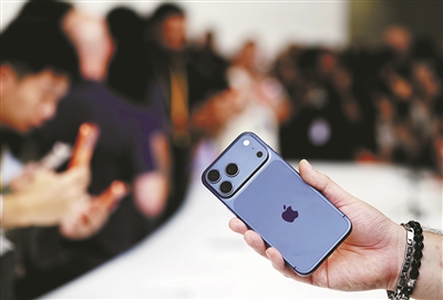 图为9月9日,在美国加利福尼亚州丘珀蒂诺市,人们在苹果新品发布会后体验新品手机。