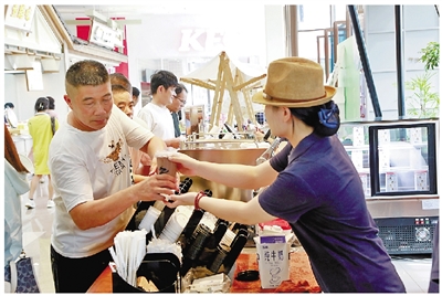 不仅“1元咖啡”受欢迎,其他摊位同样人气十足。“匠心传承”非遗摊位成了孩子们的乐园,伴随着面塑非遗艺人的指尖翻飞,彩色的面团瞬间变成栩栩如生的小动物,引得围观的小朋友阵阵惊呼;“舌尖上的共富”农产品展台前围满了试吃的旅客,下沙大麦烧、风味酱菜、手工藕粉等特色食品美味诱人,深受大家喜爱。