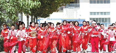 喜庆的乐曲声中人群欢腾,维吾尔族群众打起手鼓,哈萨克族群众高举礼盒,蒙古族群众挥舞哈达,回族群众手捧盖碗茶,柯尔克孜族群众弹起库姆孜,汉族群众打起大鼓……绚丽多彩的大地,朴实热情的人民。