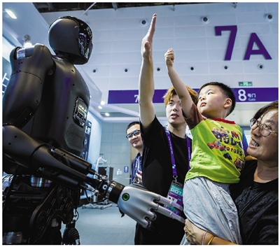 巡回在本届数贸会的八大展区之间,从工业到贸易,从娱乐到医疗,机器人已然是最重要的科技产品之一。